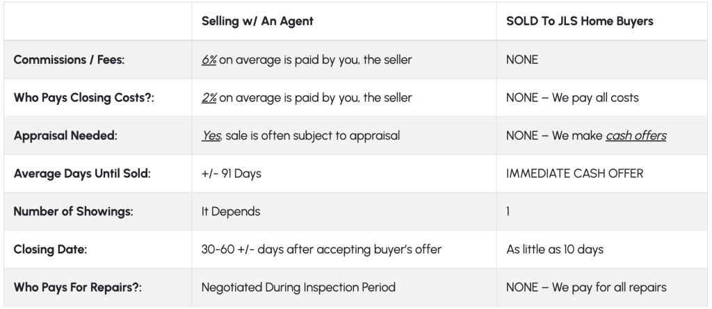Yes, here at JLS Home Buyers we won’t be able to offer you full retail value for your house… but we also offer other benefits that going the traditional house sale route can’t offer.